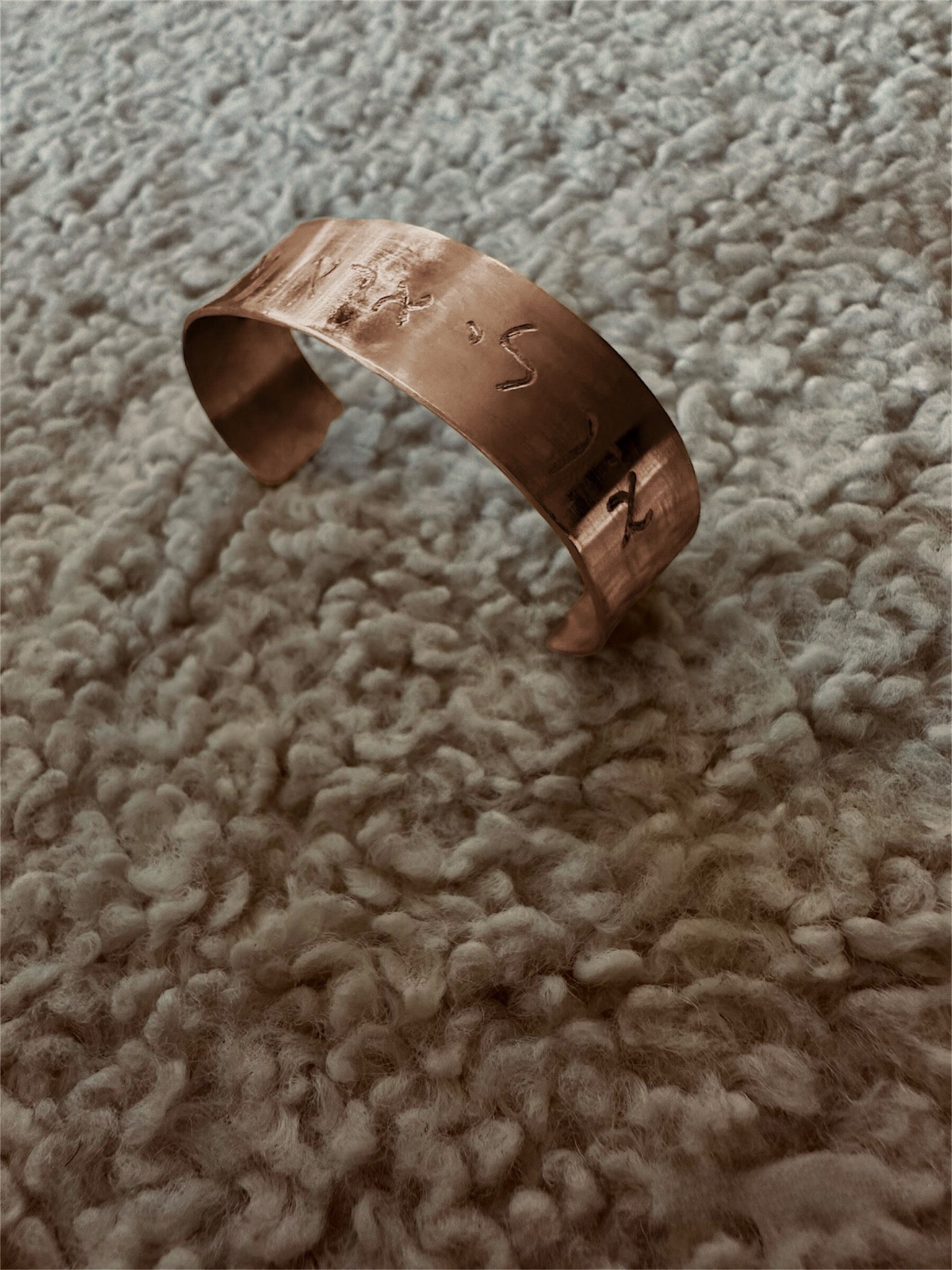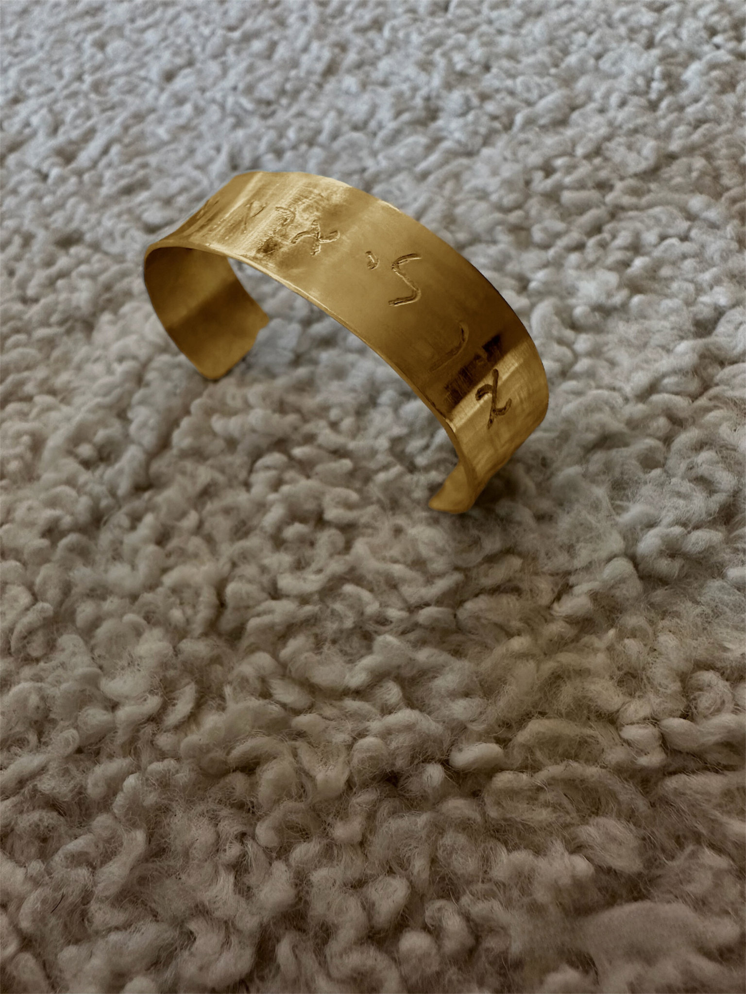 הצמיד כולו עשוי ממתכות יוקרה ומיוצר בעבודת יד מלאה, עם מקום לכל חריטה שאפשר לחלום עליה, באיזו שפה שתבקשי.