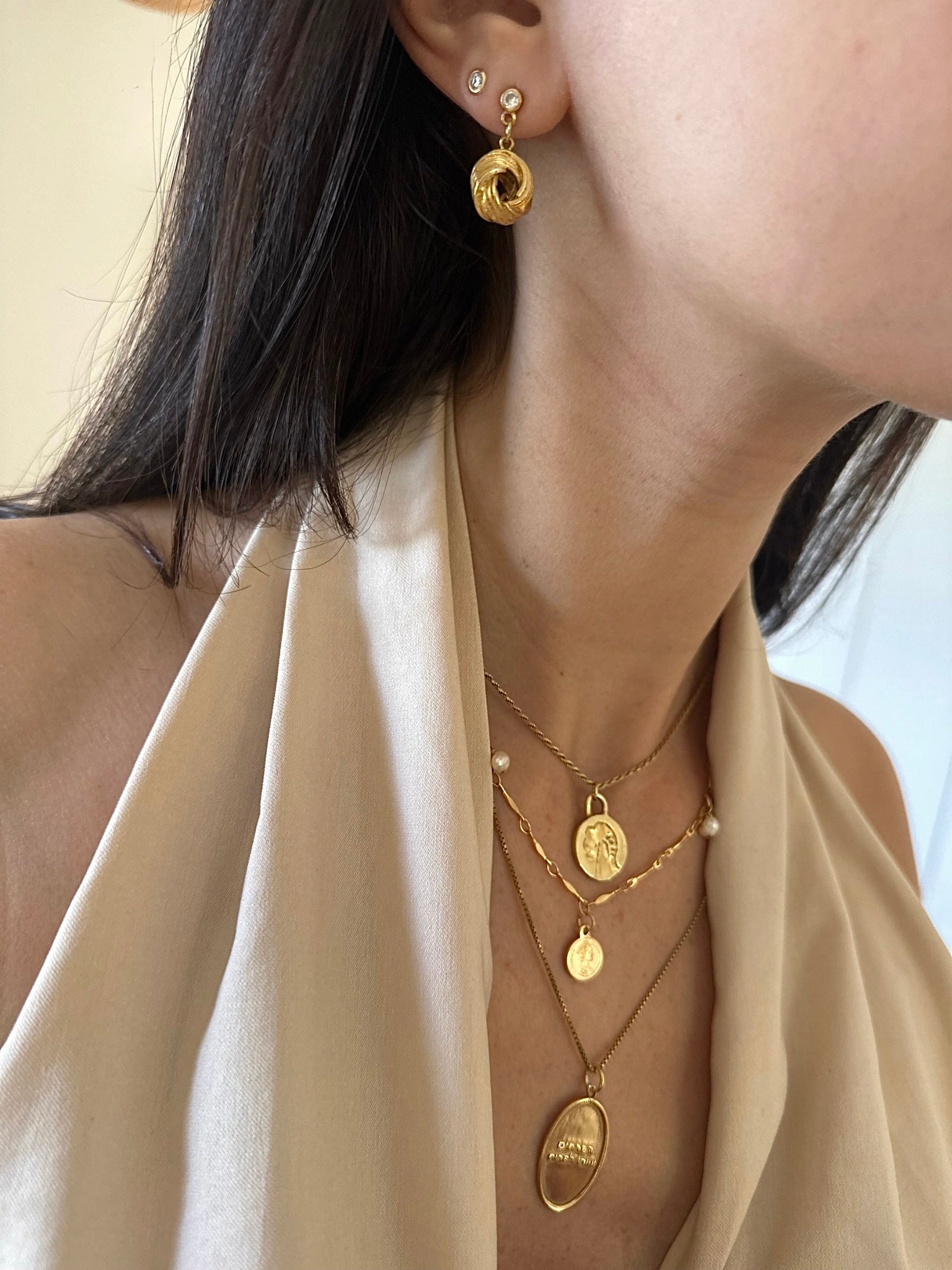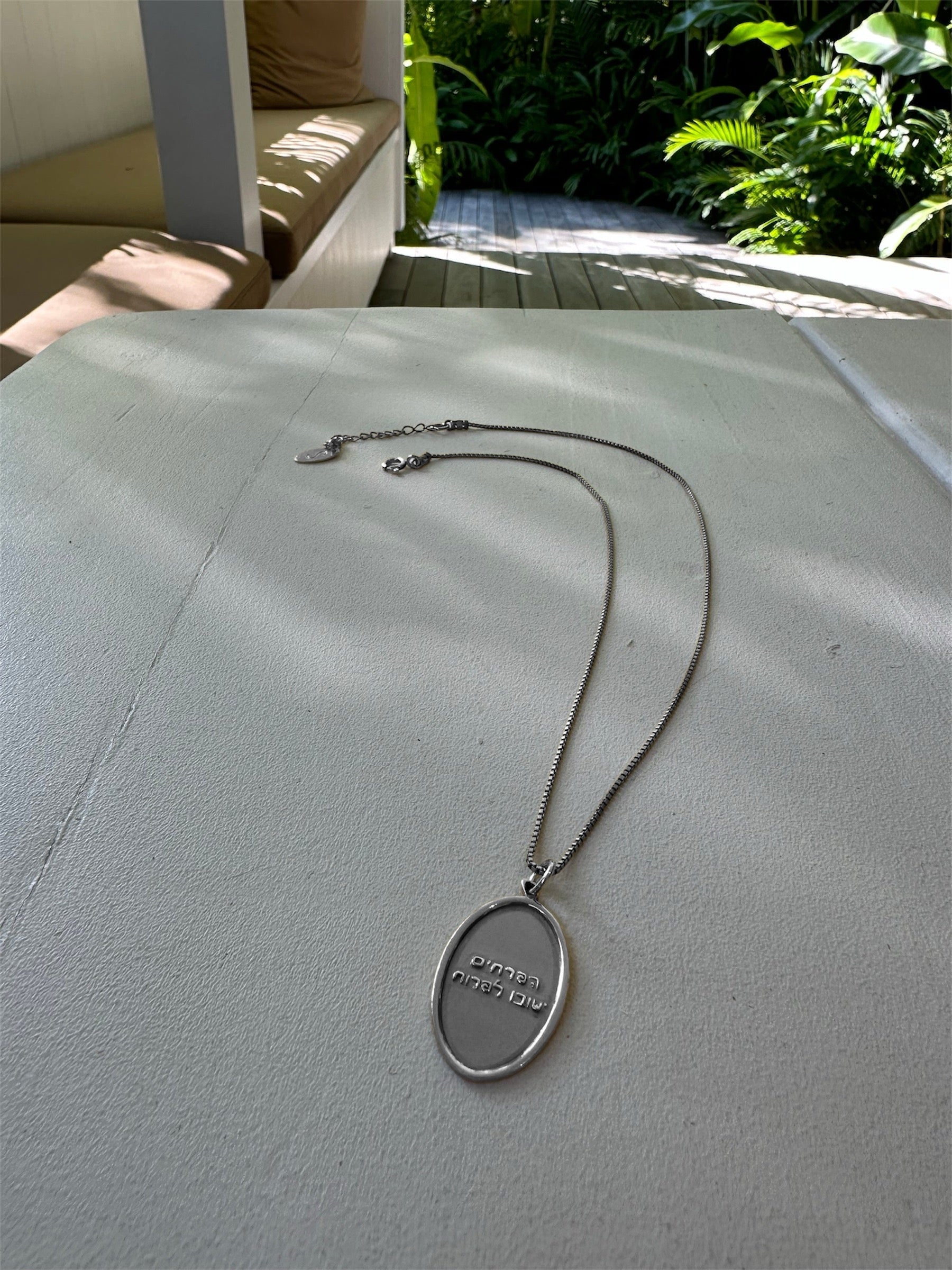 השרשרת מורכבת מתליון קלאסי- וינטג׳ נקי, עליו תוכלי לחרוט כל משפט שתרצי בעיצוב אישי.