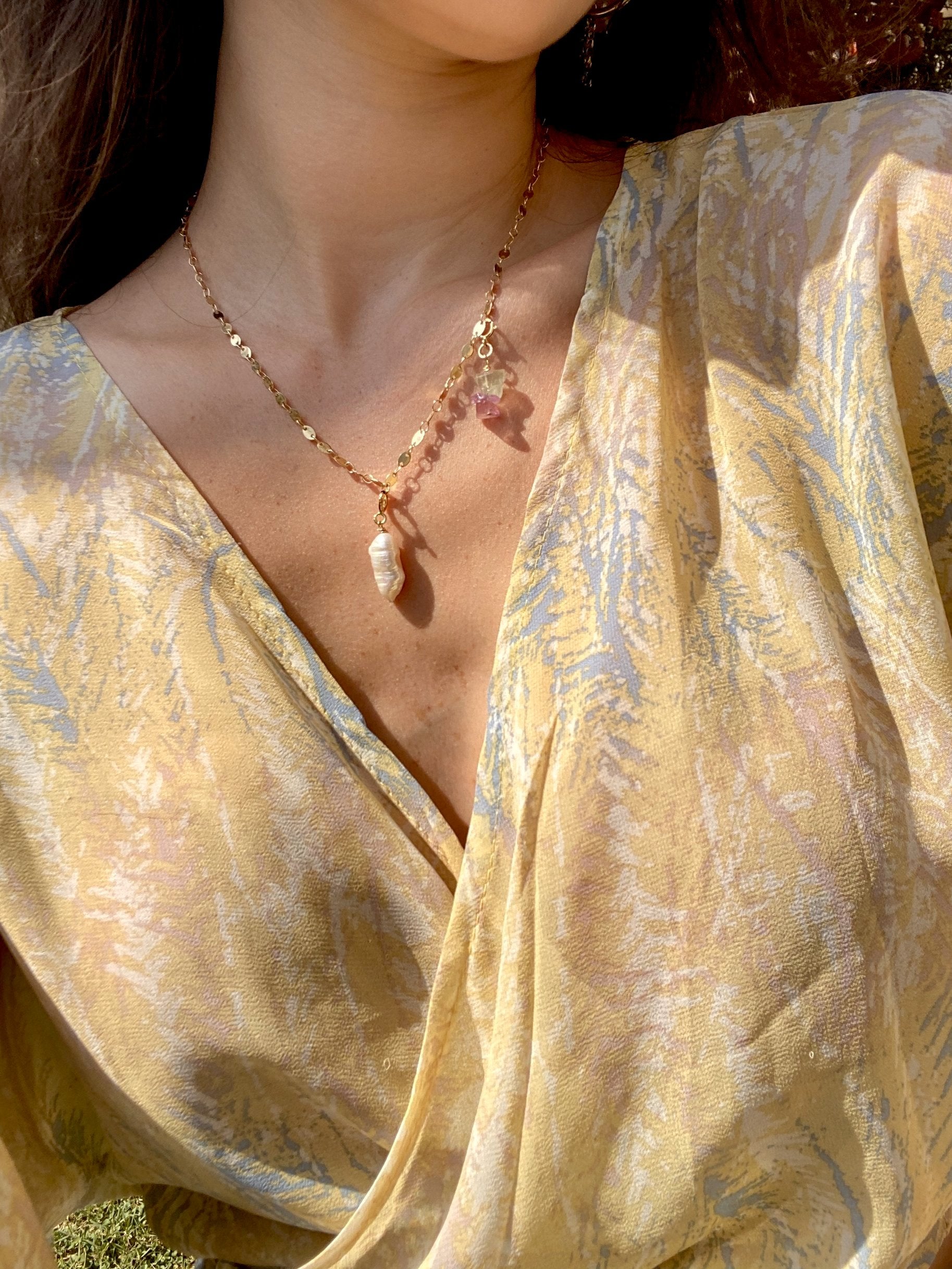 תליון גולדפילד ציפוי זהב 14K בשילוב פנינת מעם מתוקים טבעית.