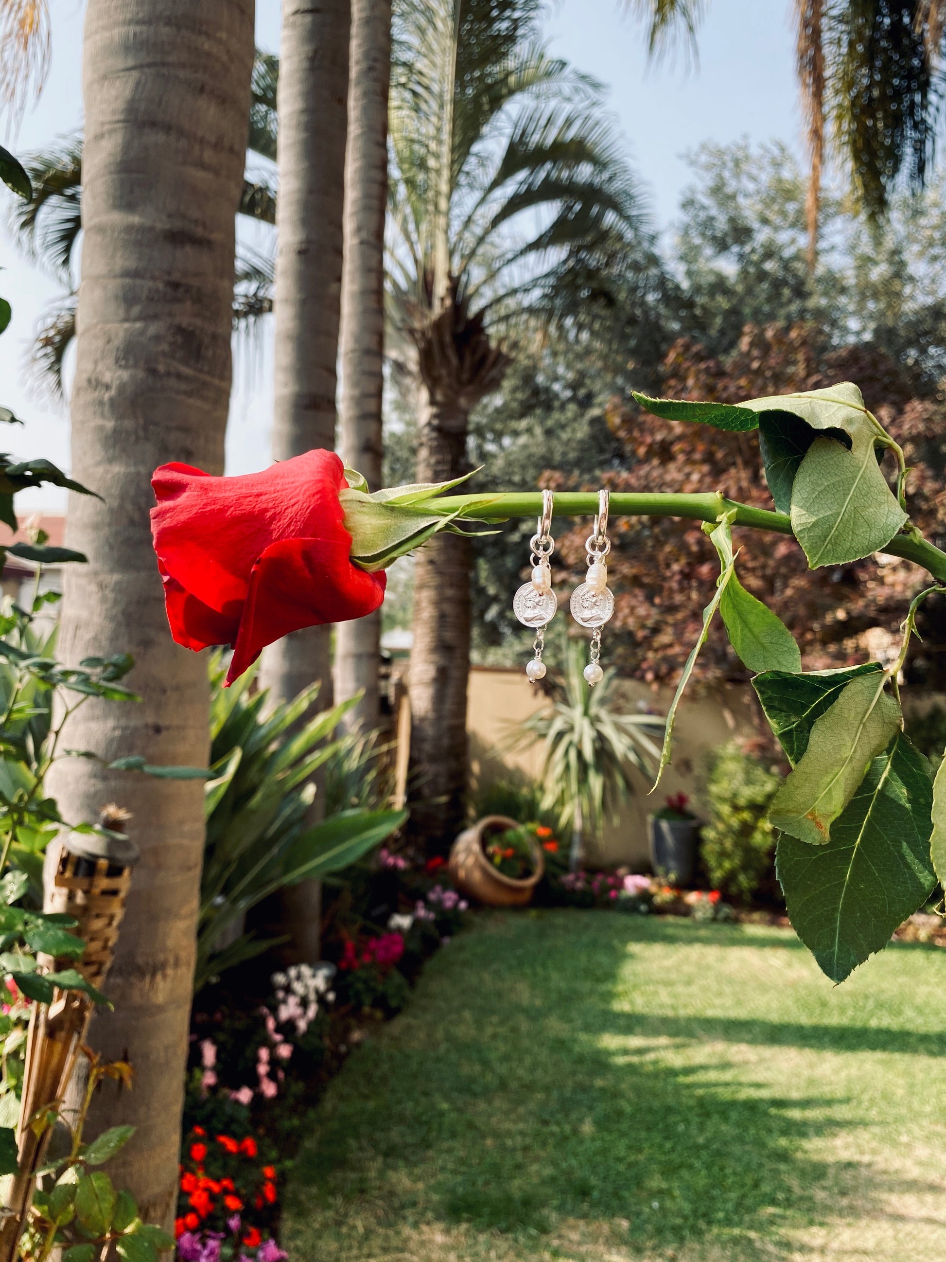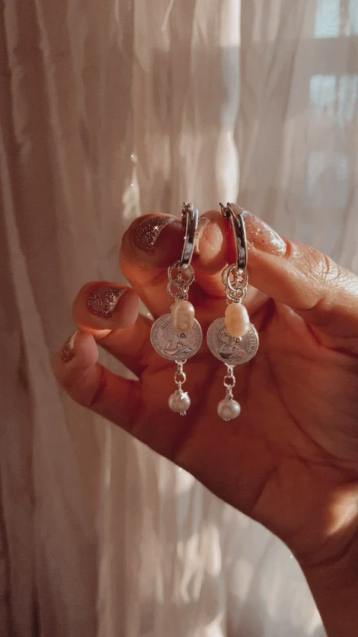 עשויים כסף 925, בשילוב תליוני מטבעות אליזבת ופניני מים מתוקים אמיתיות טבעיות.