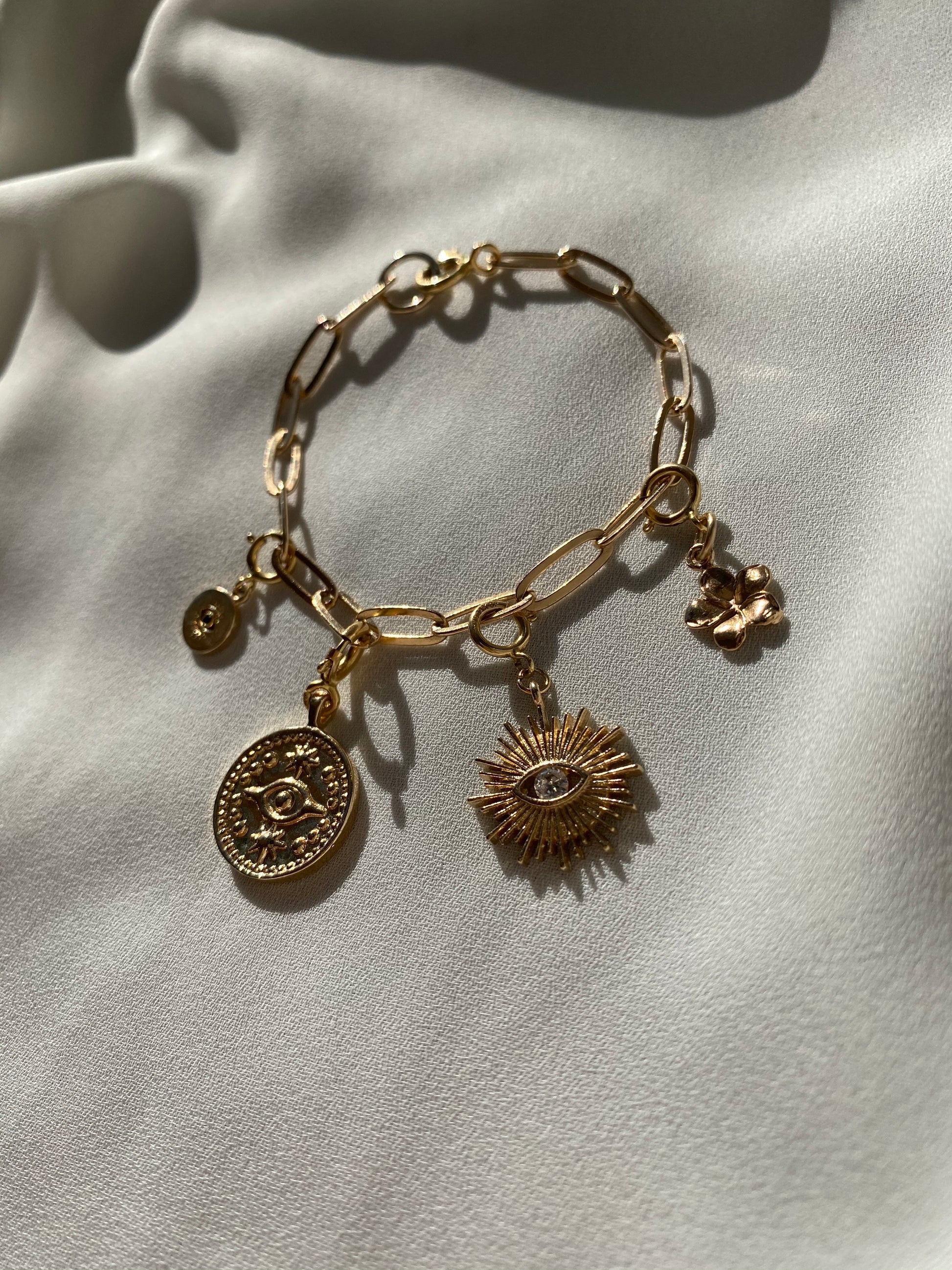 צמיד צ׳ארם גולד, עשוי גולדפילד 14 קארט, עם סוגר איכותי ועמיד, נוח לענידה.