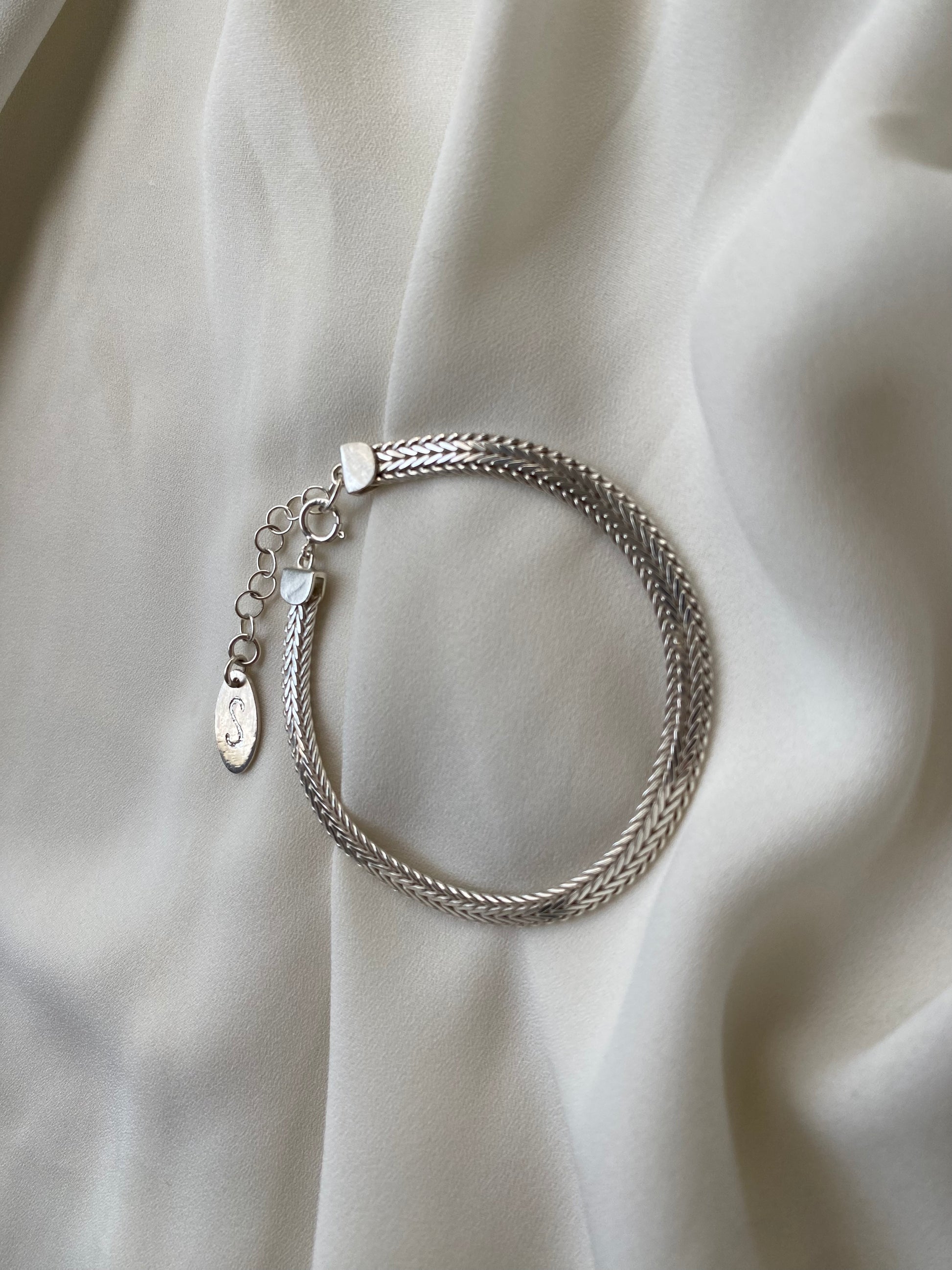 צמיד חוליות צמודות בצורת v שיוצרות מראה נשי ומלא בשיק.