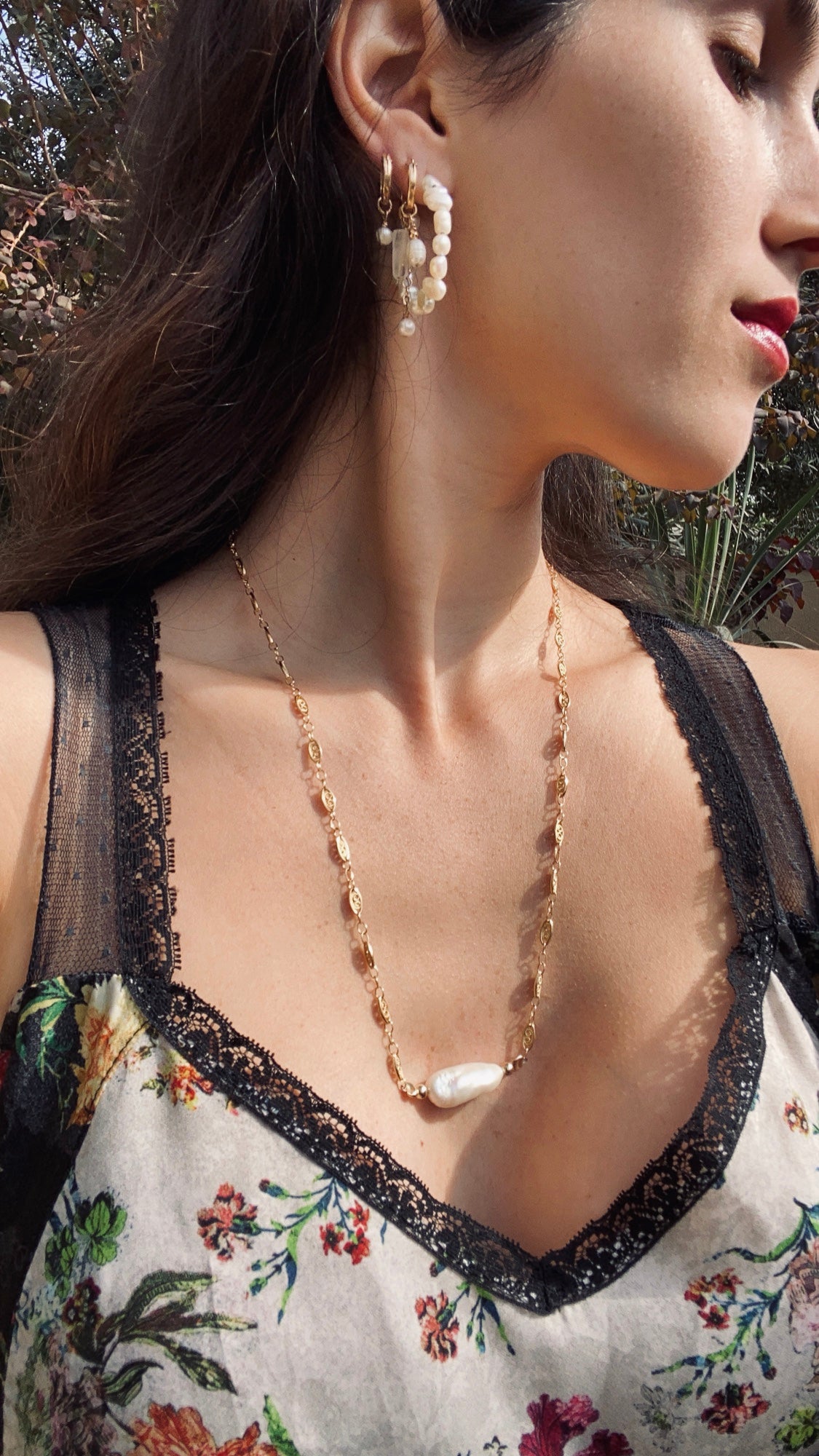 עגילי בל עשויים גולדפילד 14 קארט, בשילוב פניני מים מתוקים טבעיות אמיתיות. קלילות על האוזן.