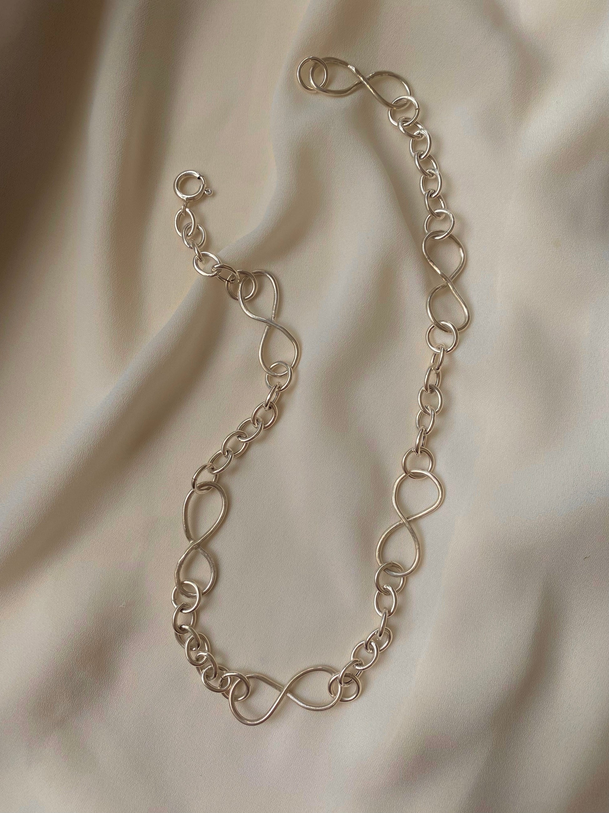 השרשרת עשויה חוליות אובליות עגולות, בשילוב לולאות סמל האינסוף- ״אינפיניטי״, המיוצרות בעבודת צורפות קלאסית. לכן, כל לולאה בעלת אופי שונה מהאחרת - אין אחת שתואמת בדיוק לשניה.