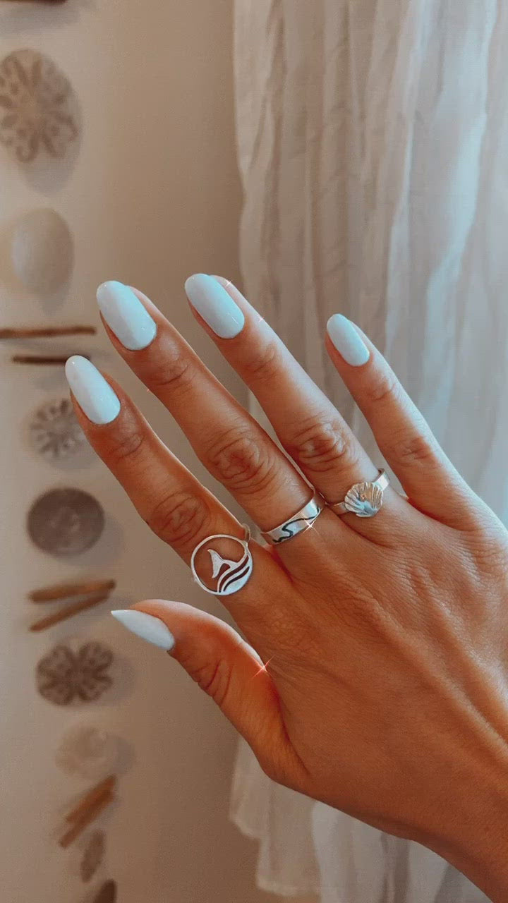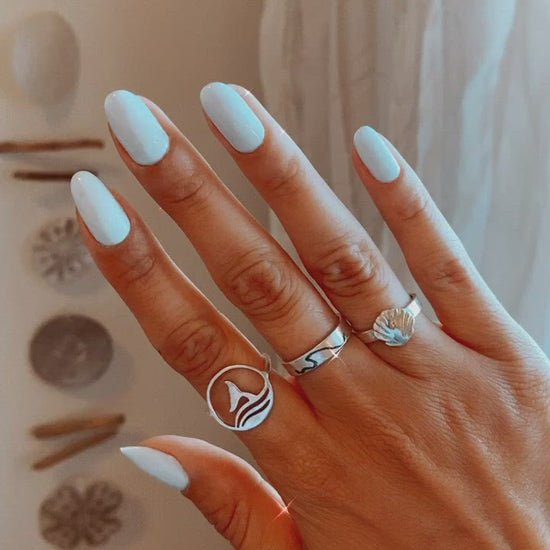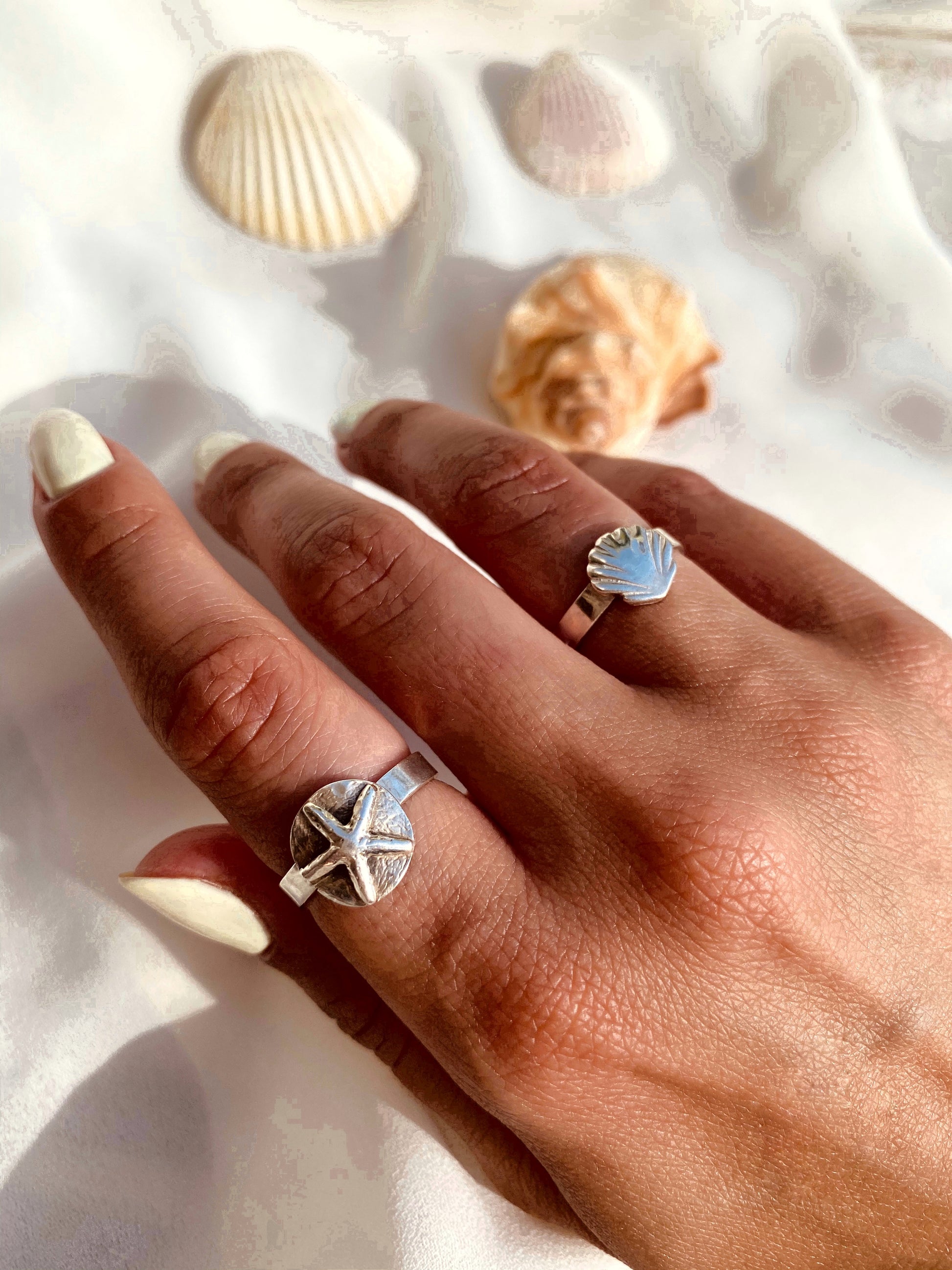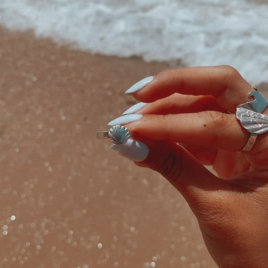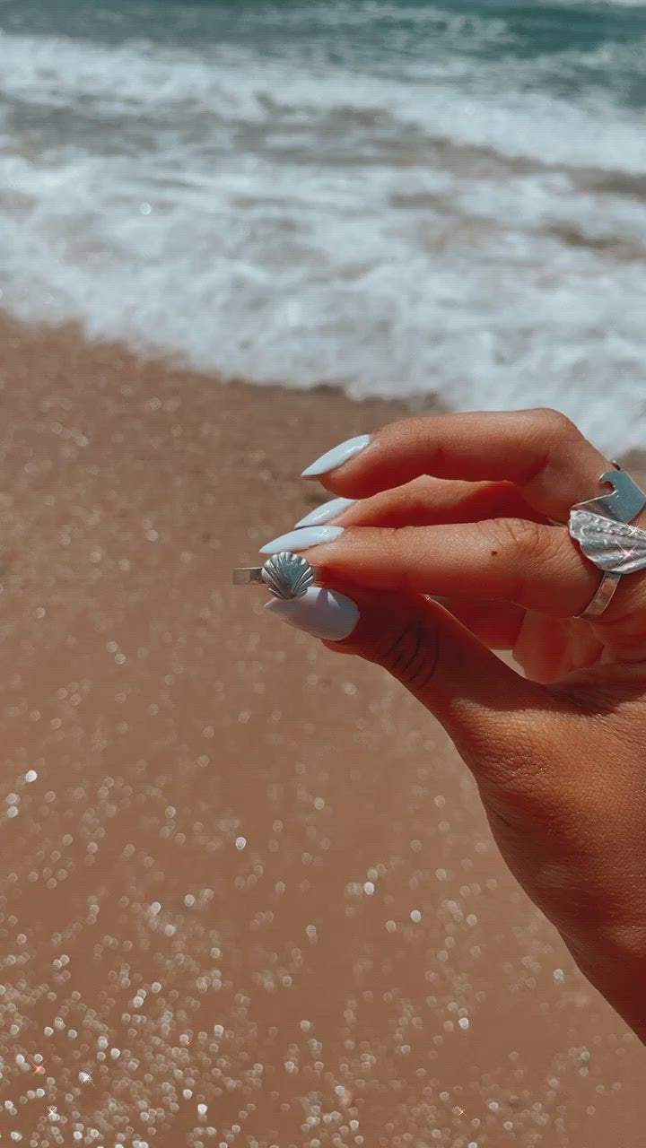 טבעת בעובי בינוני עם צדף עדין ומושלם במרכז.