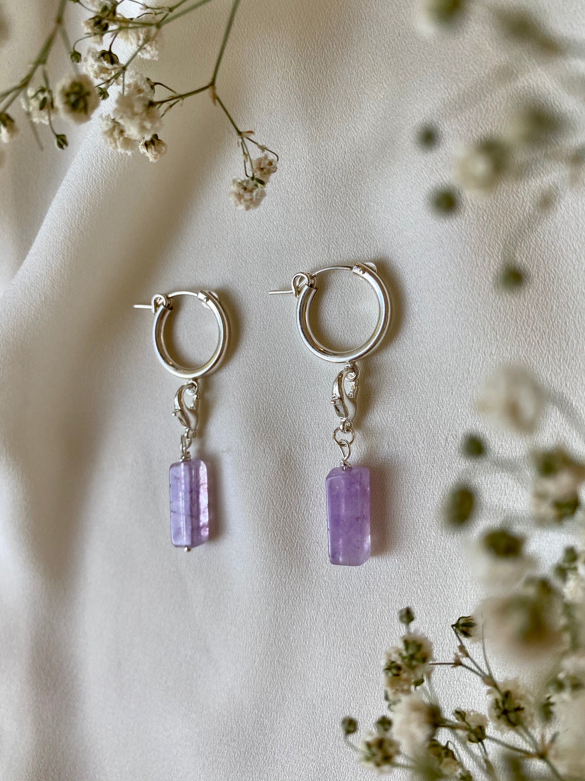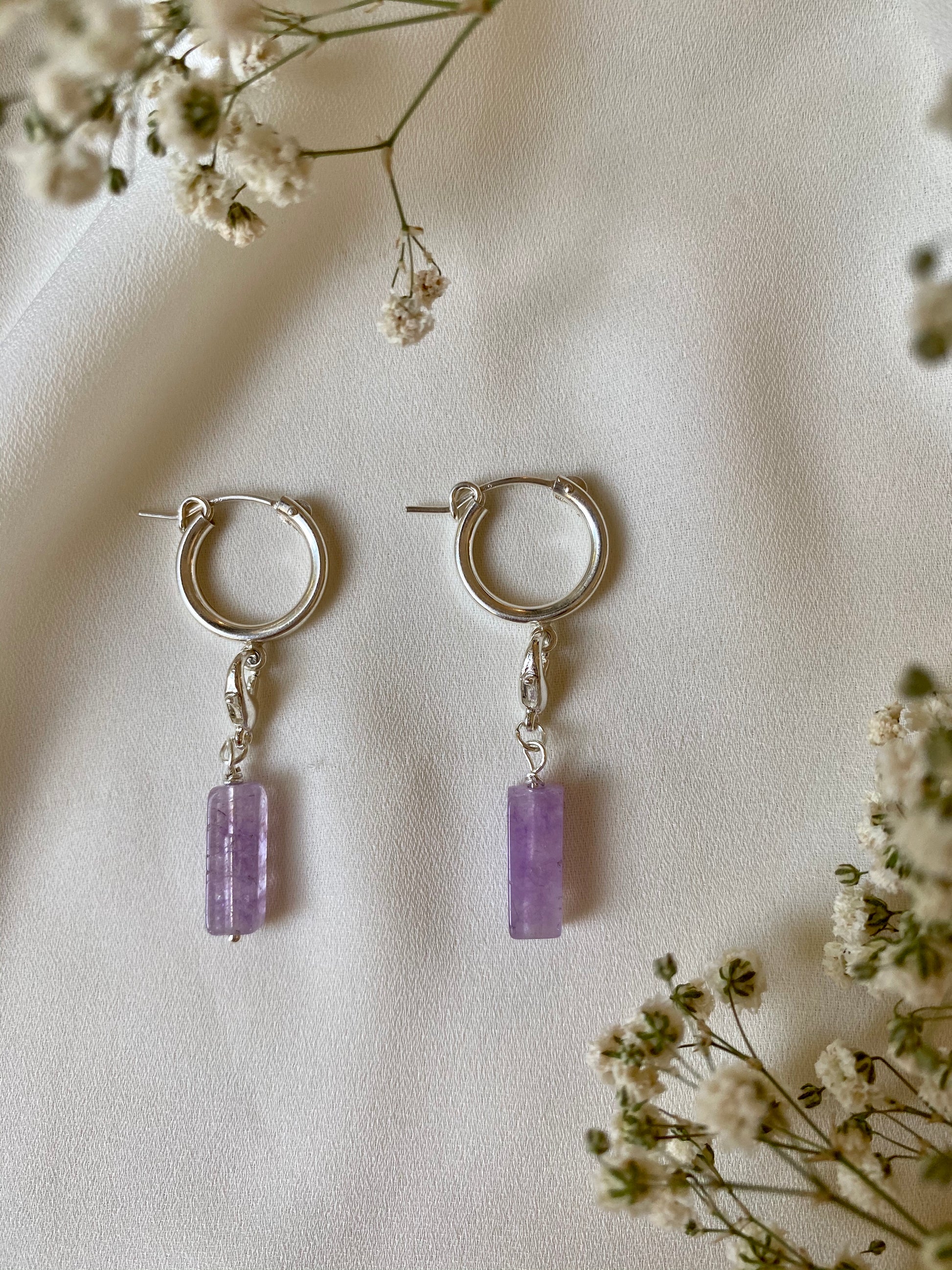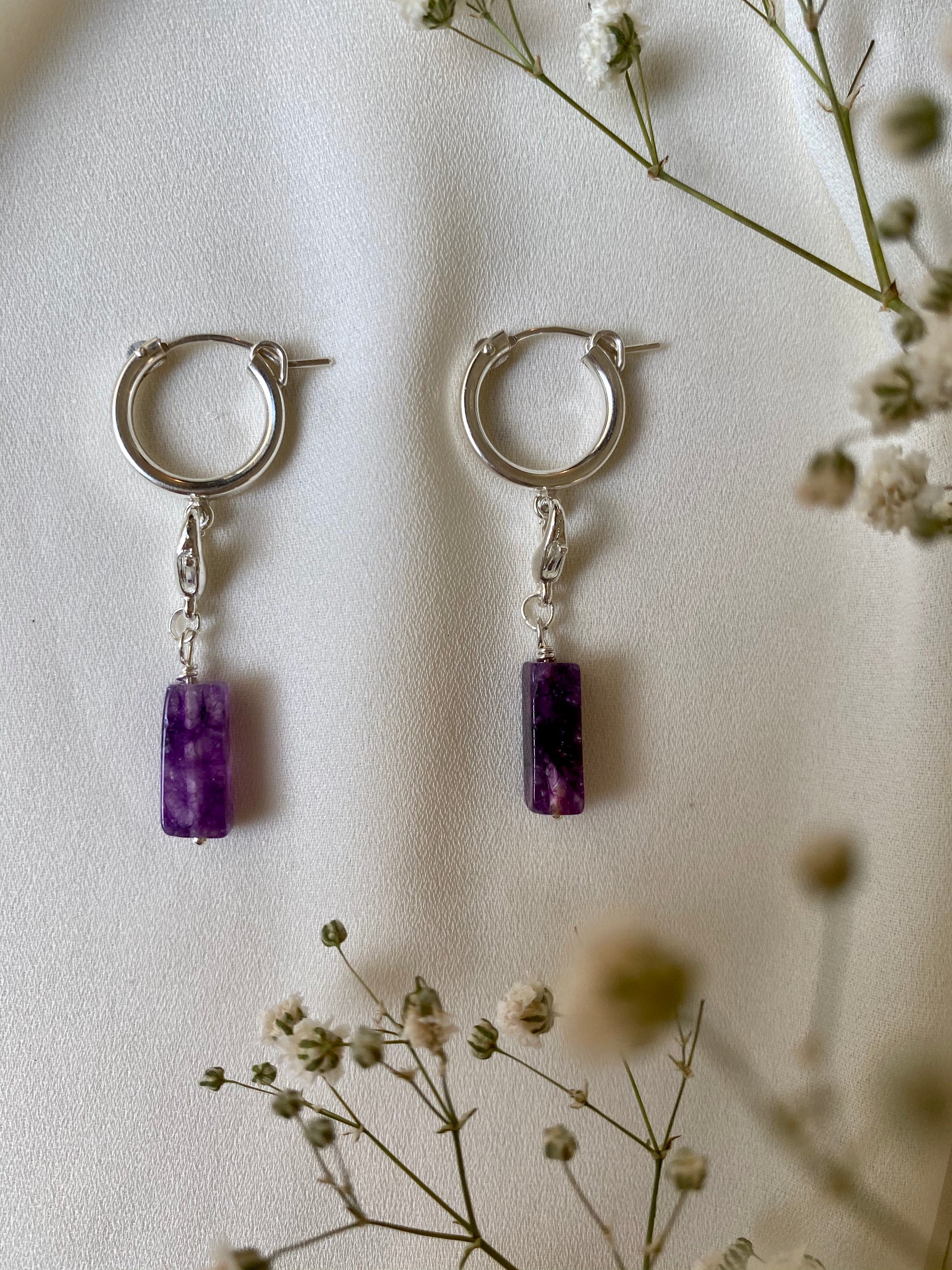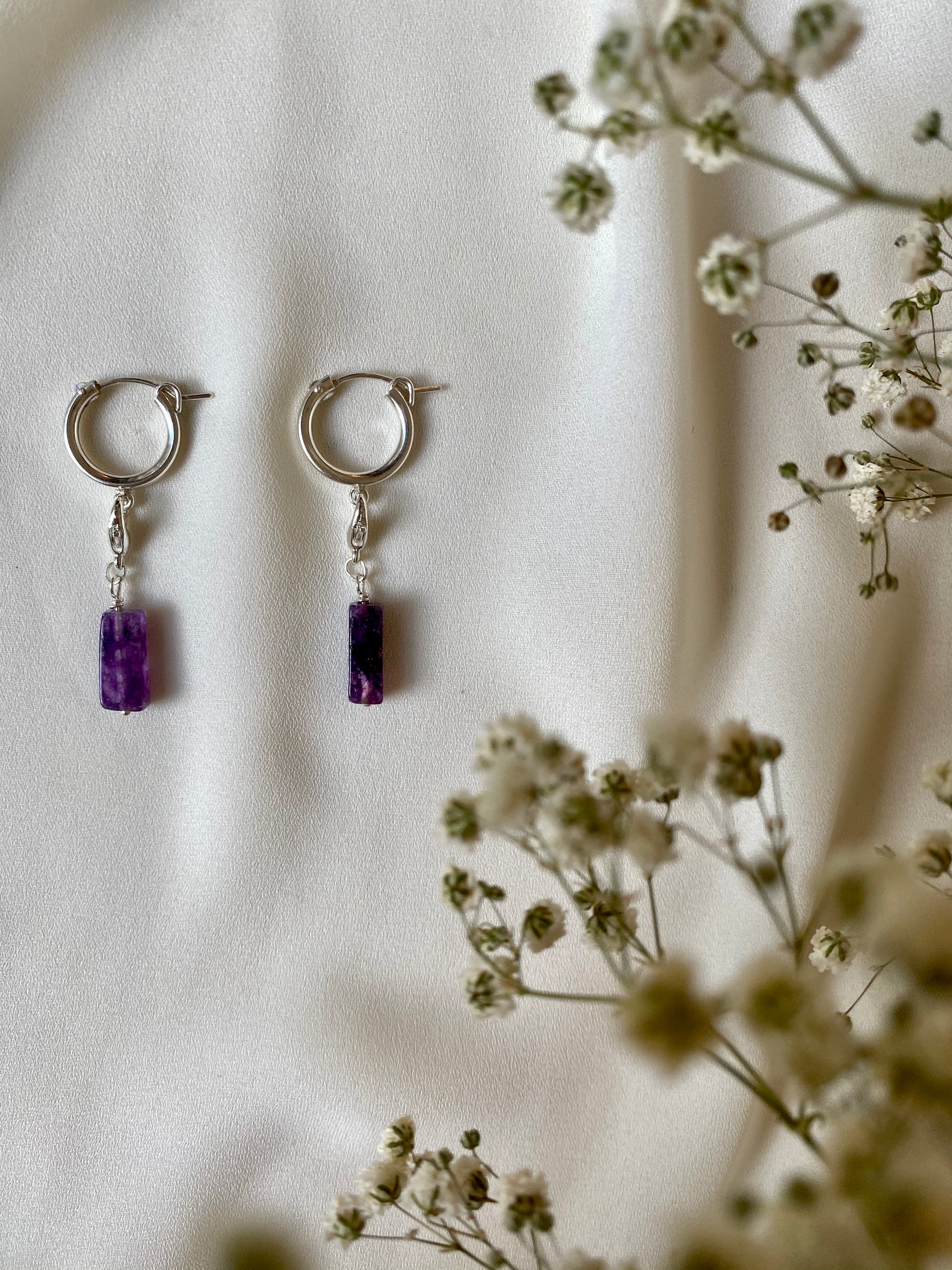 אבן מרפא מהפנטת חושים, תלויה על עגילי חישוק כסף 925.
