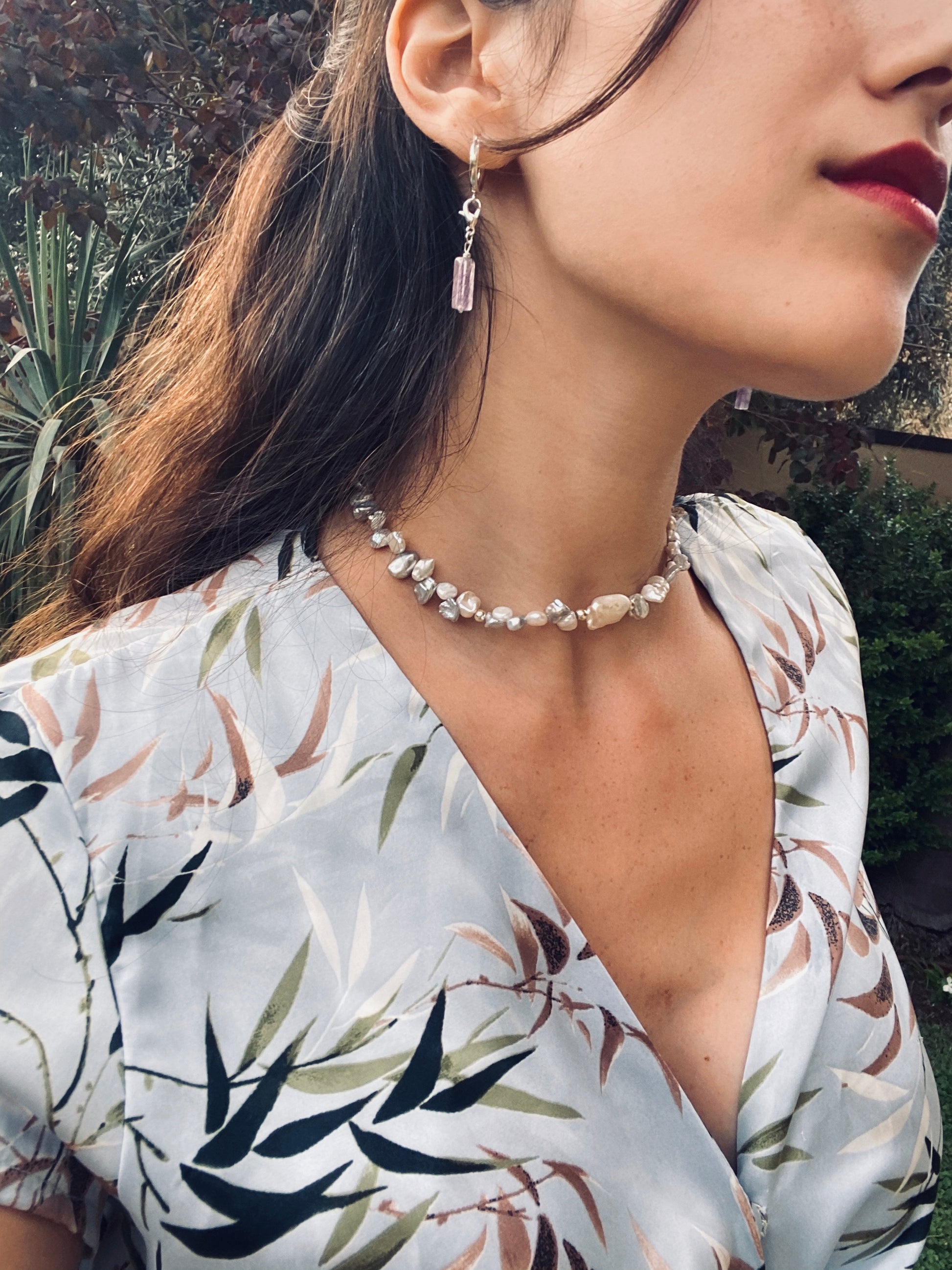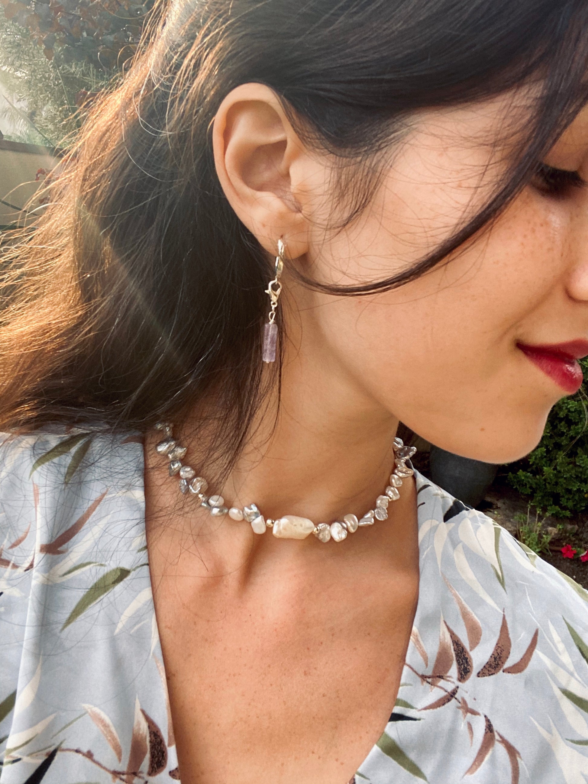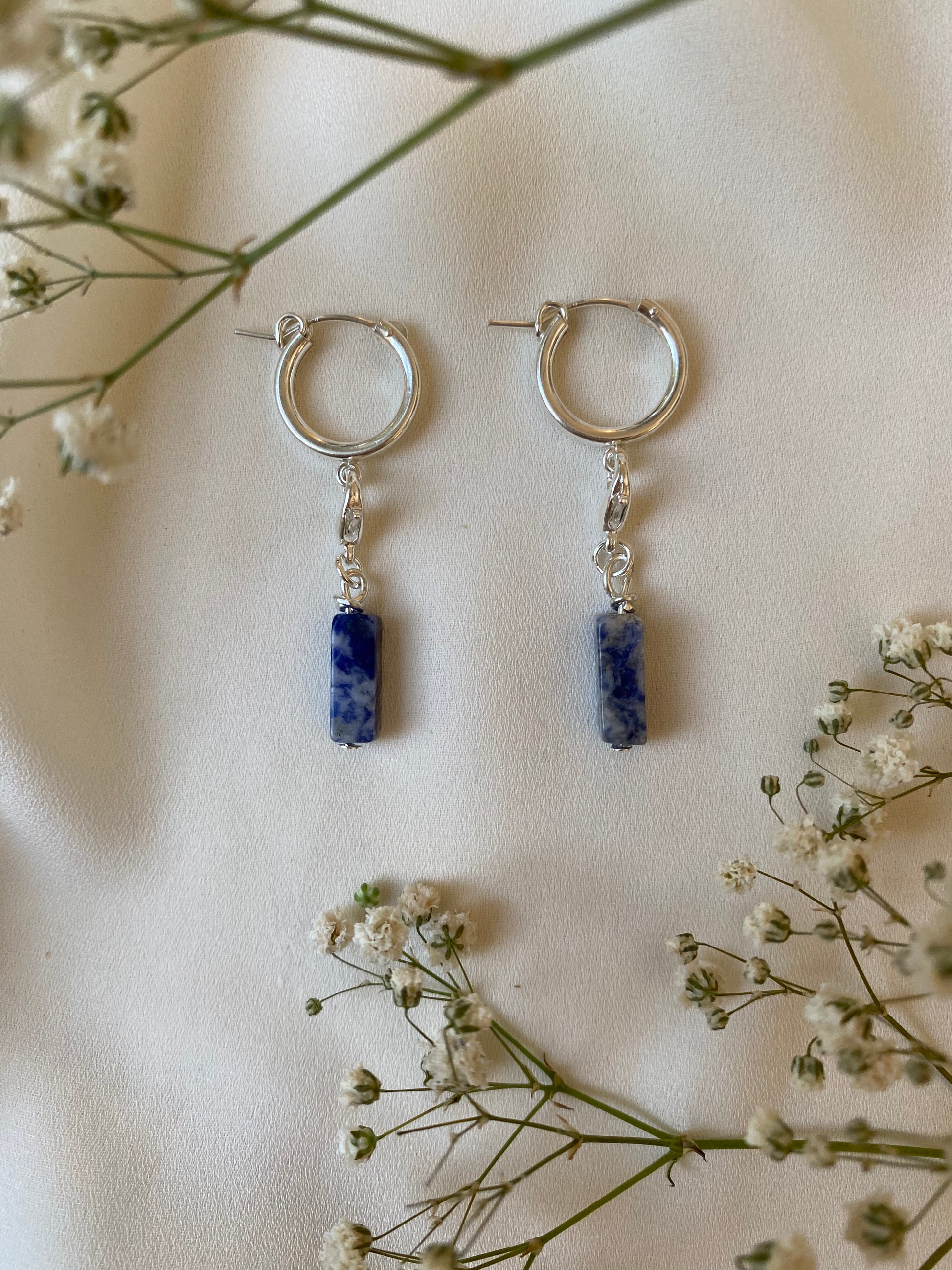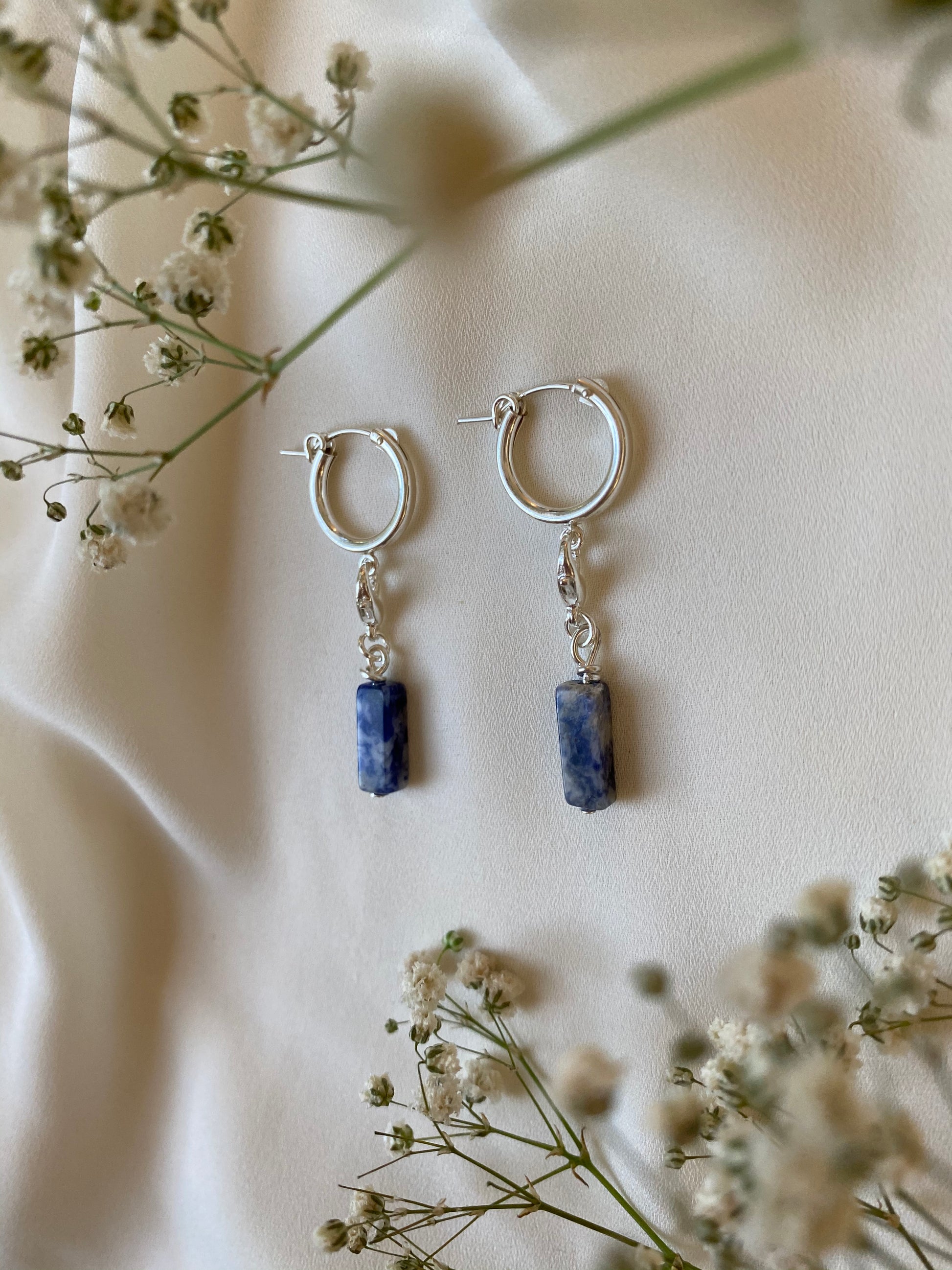 אבן מרפא מהפנטת חושים, תלויה על עגילי חישוק כסף 925.