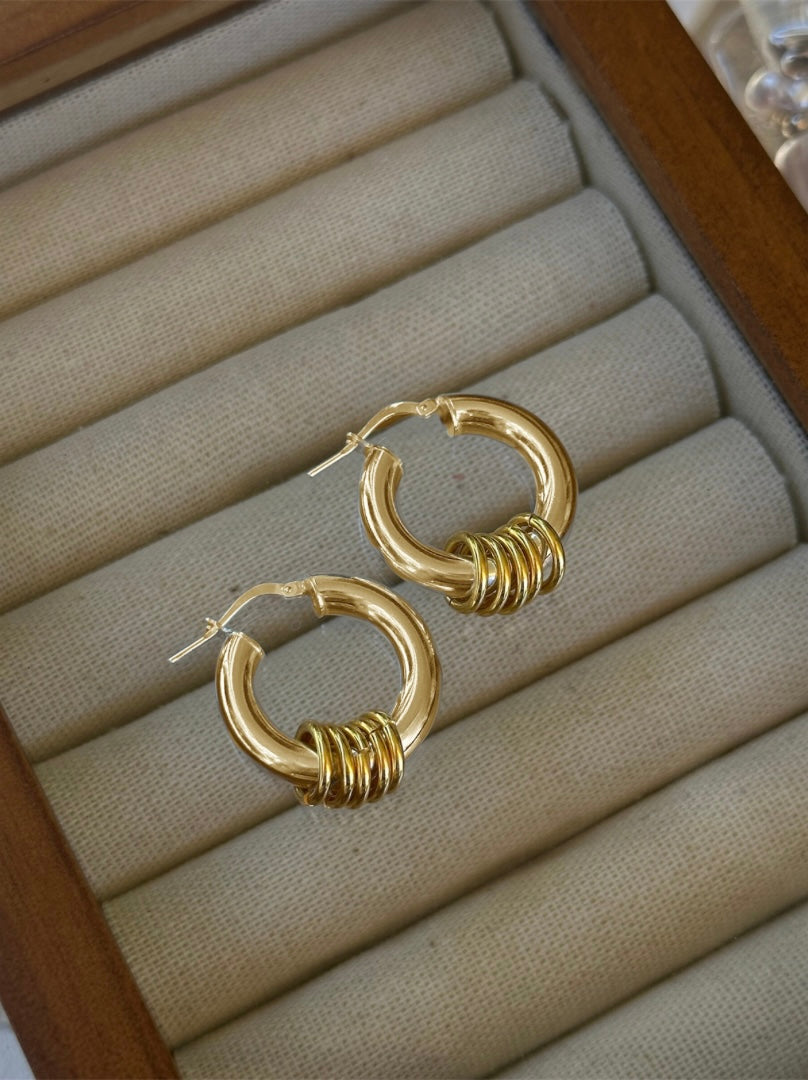 עגילי חישוק מושלמים בקוטר 2.5 ס"מ ובעובי 5 מ"מ עשויים כסף 925 ועליהם לולאות כסף 925 מצופים זהב 14 קראט למראה אלגנטי ומלא דיטיילז.