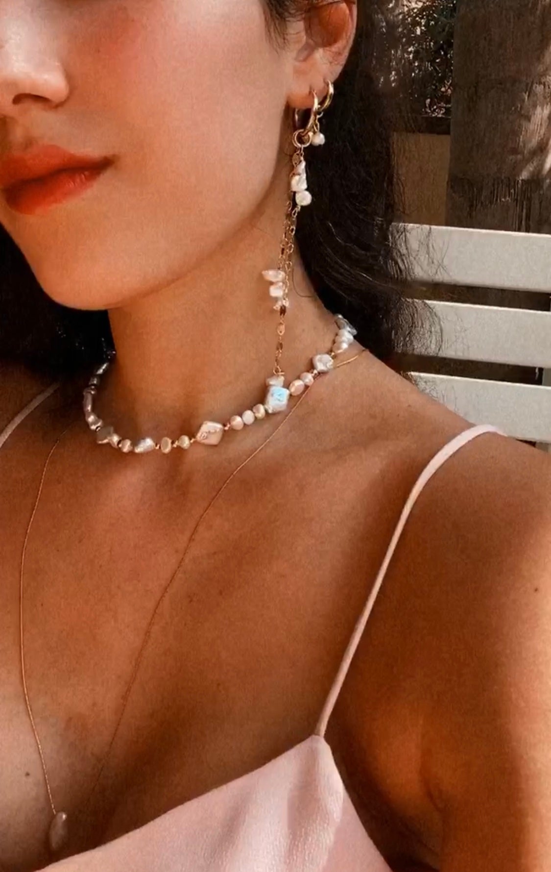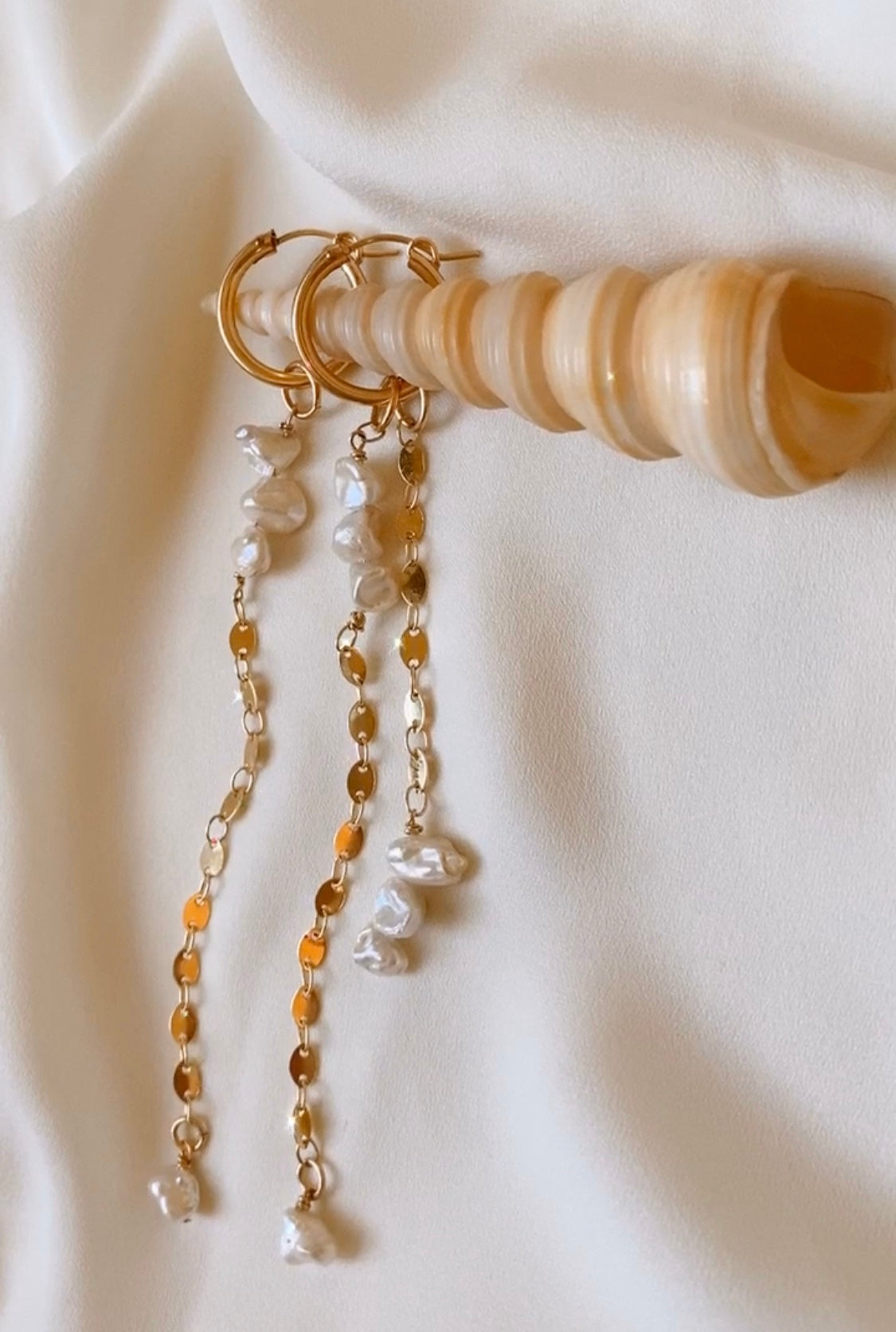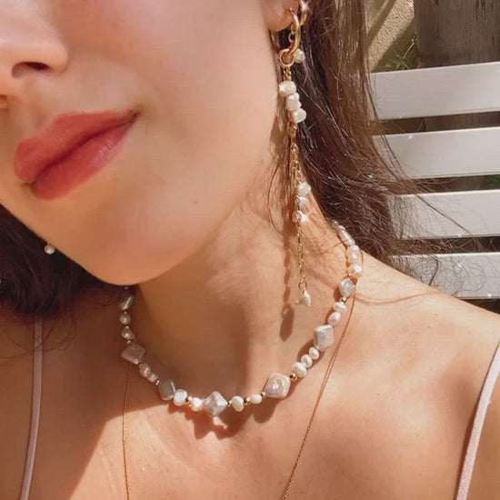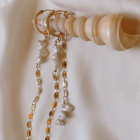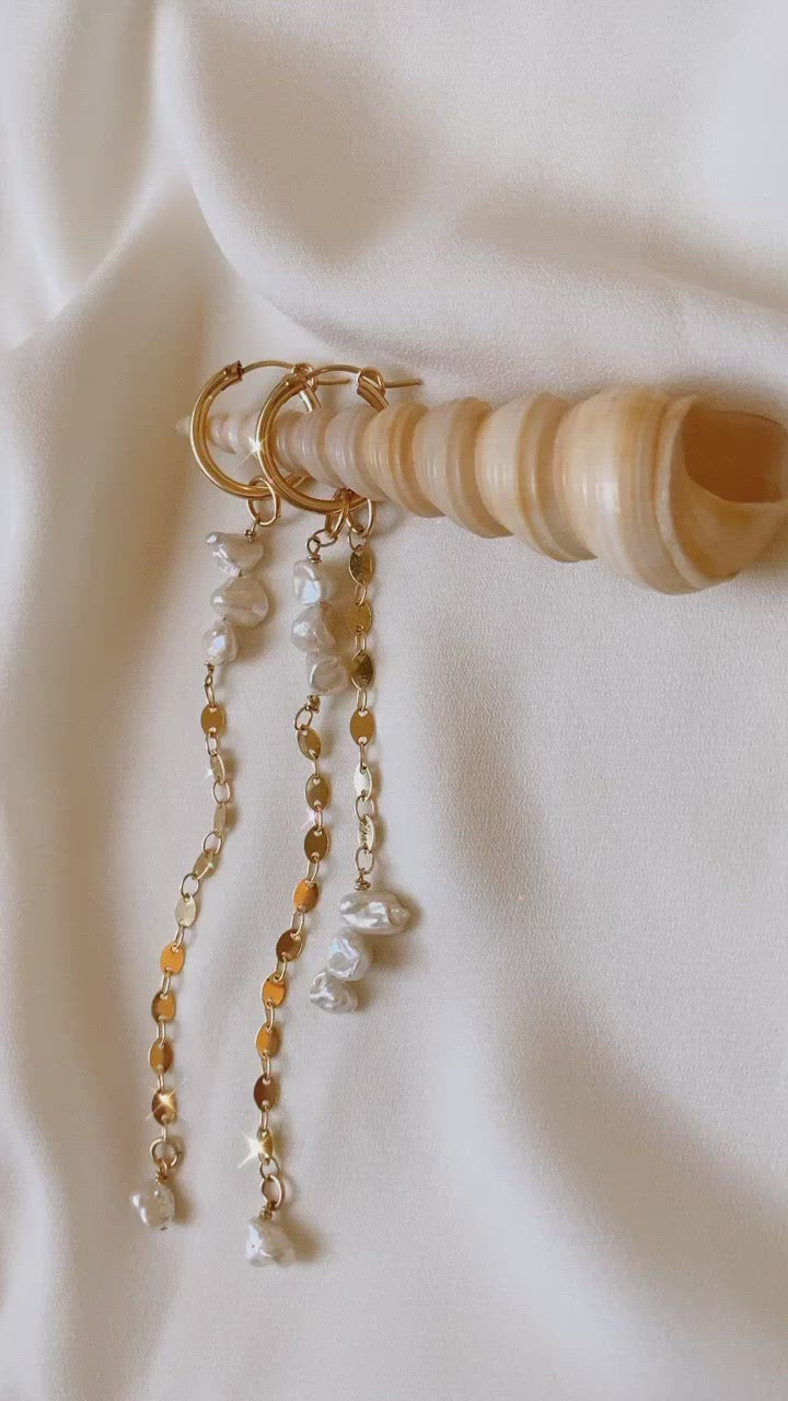 עגילי חישוק עשויים גולדפילד 14 קארט בשילוב פניני מים מתוקים טבעיות אמיתיות.