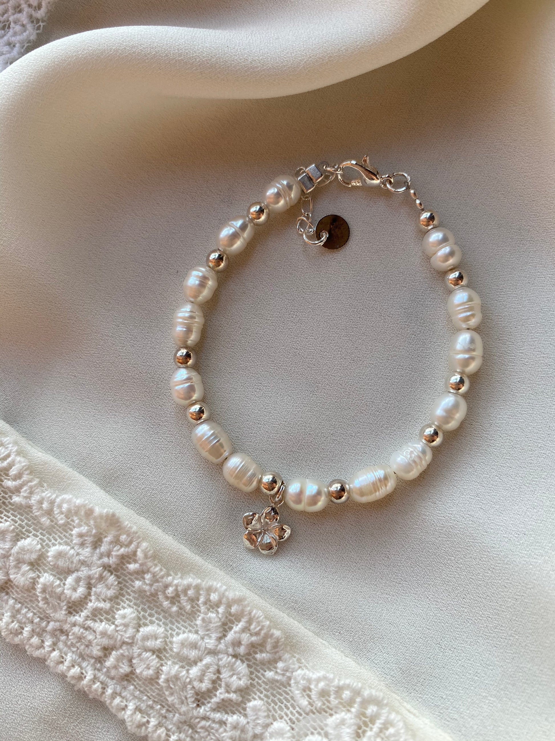 עשוי פניני מים מתוקים אמיתיות טבעיות בשילוב חרוזי כסף 925/ עמיד במים.