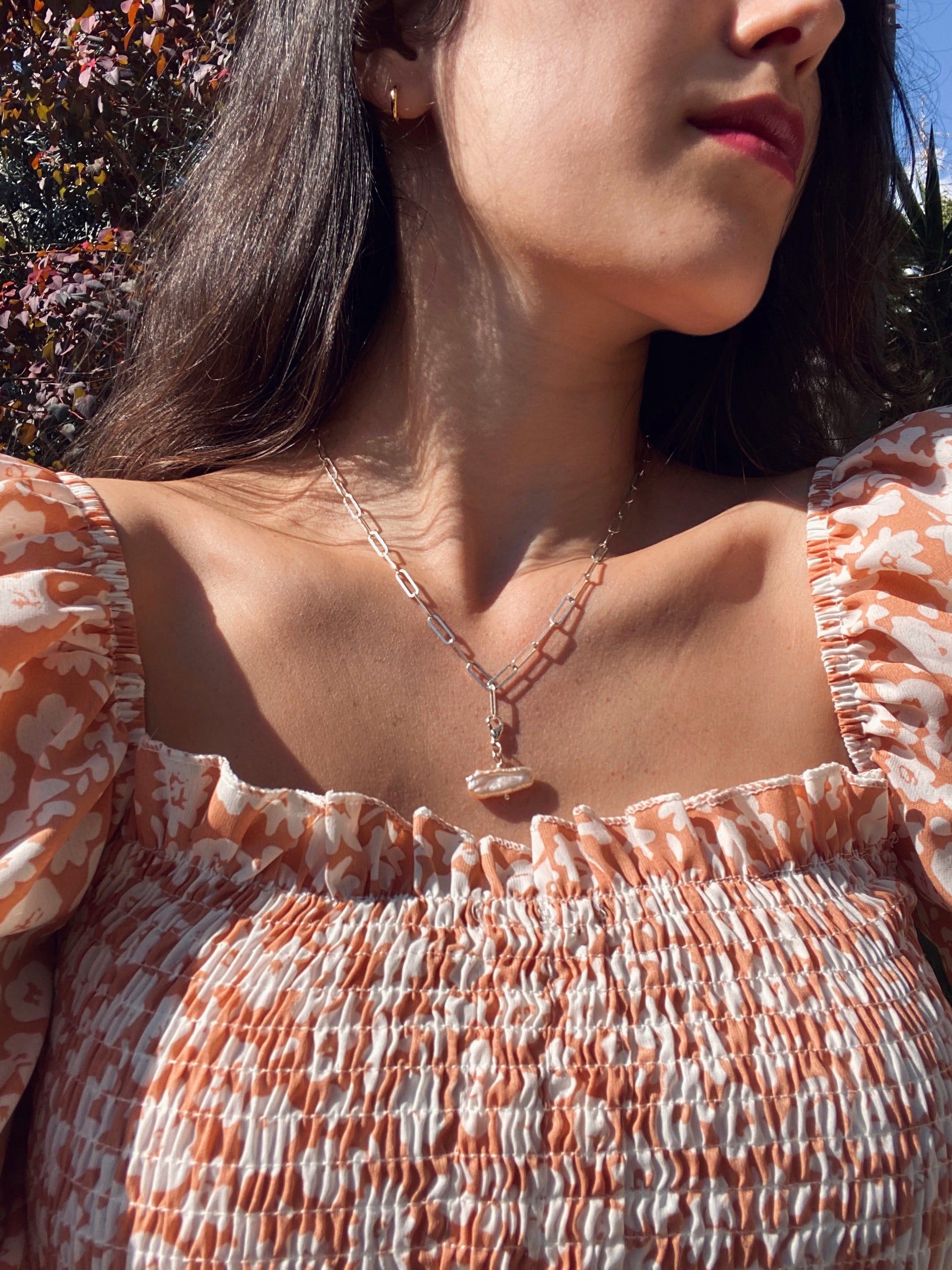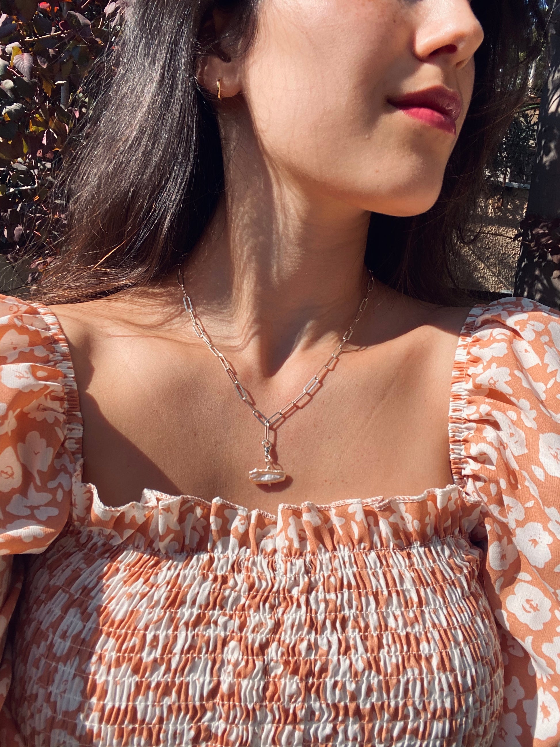 תליון עשוי פנינה בגוון פי׳צי אפרסקי- ורדרד, בשילוב גולדפילד ציפוי זהב 14K.
