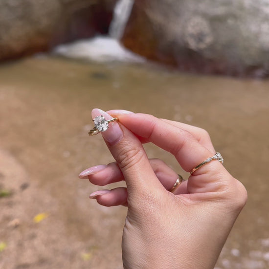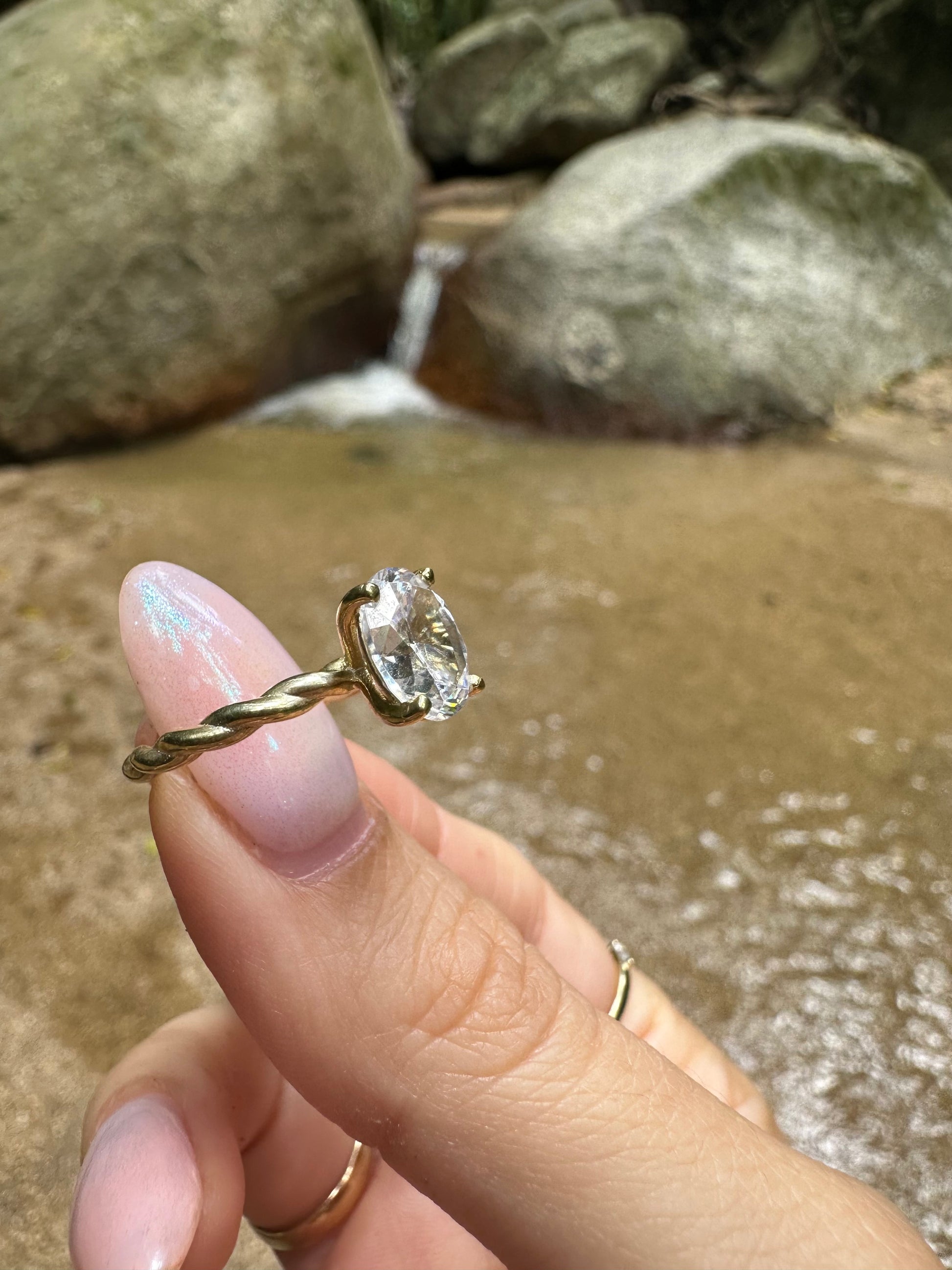 טבעת אירוסין עם טוויסט, בהשראת העץ ביער הגשם בו טיילתי בירח דבש באוסטרליה.